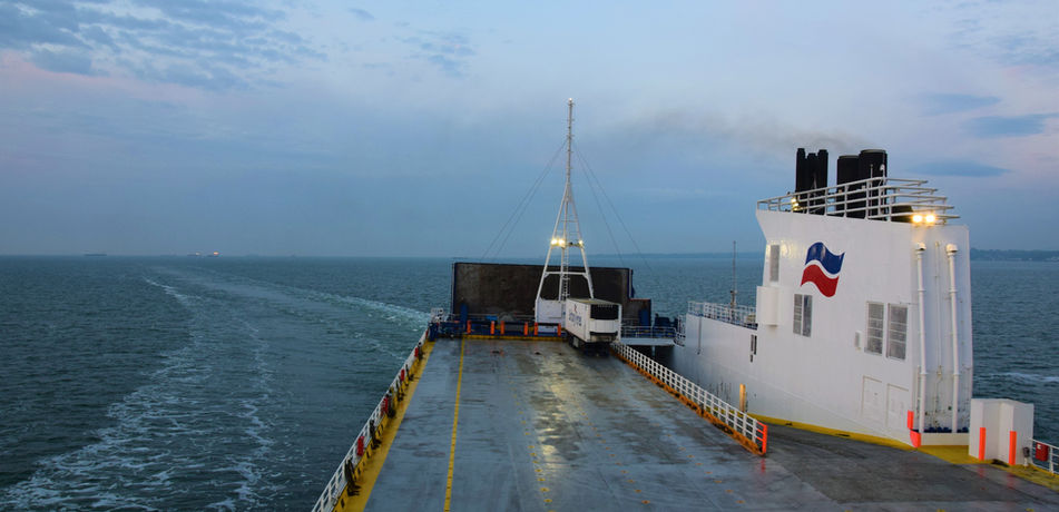 Le Baie de Seine quittant Portsmouth pour l'Espagne