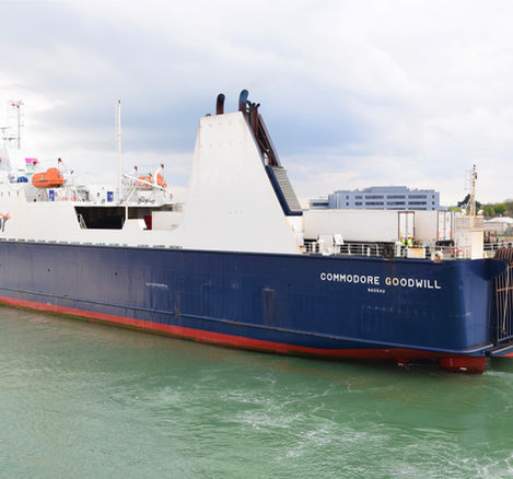 DFDS, qui a remportée Jersey pour une durée de 20 ans, devrait exploiter quatre navires dont un fréteur, un RoPax et deux High Speed Craft (HSC). Surprise ! Au début de l'été 2025, DFDS annonça que son fréteur ne serait autre que le bon Commodore Goodwill alors désarmé au Havre. Renommé Caesarea Palace sous pavillon britannique, il desservira Jersey depuis St Malo et Portsmouth à partir de l'automne 2025, après une remise en état par la compagnie danoise.