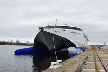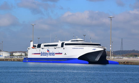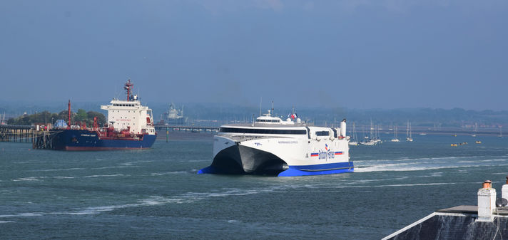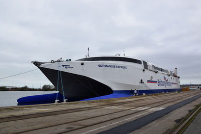 Le Normandie Express quittant Portsmouth à destination de Cherbourg.
