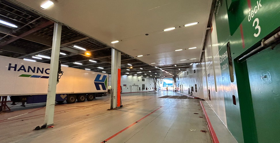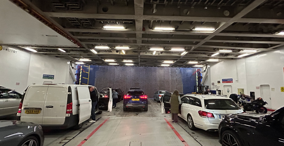 Le Stena Adventurer est un ferry très imposant comparé aux navires alors en service au début des années 2000. Long de 212m, il peut embarquer 1500 passagers et possède 3400 mètres linéaires de garage.